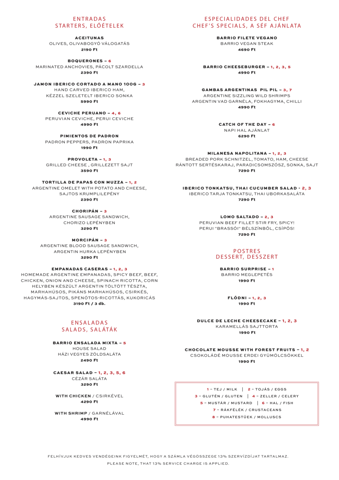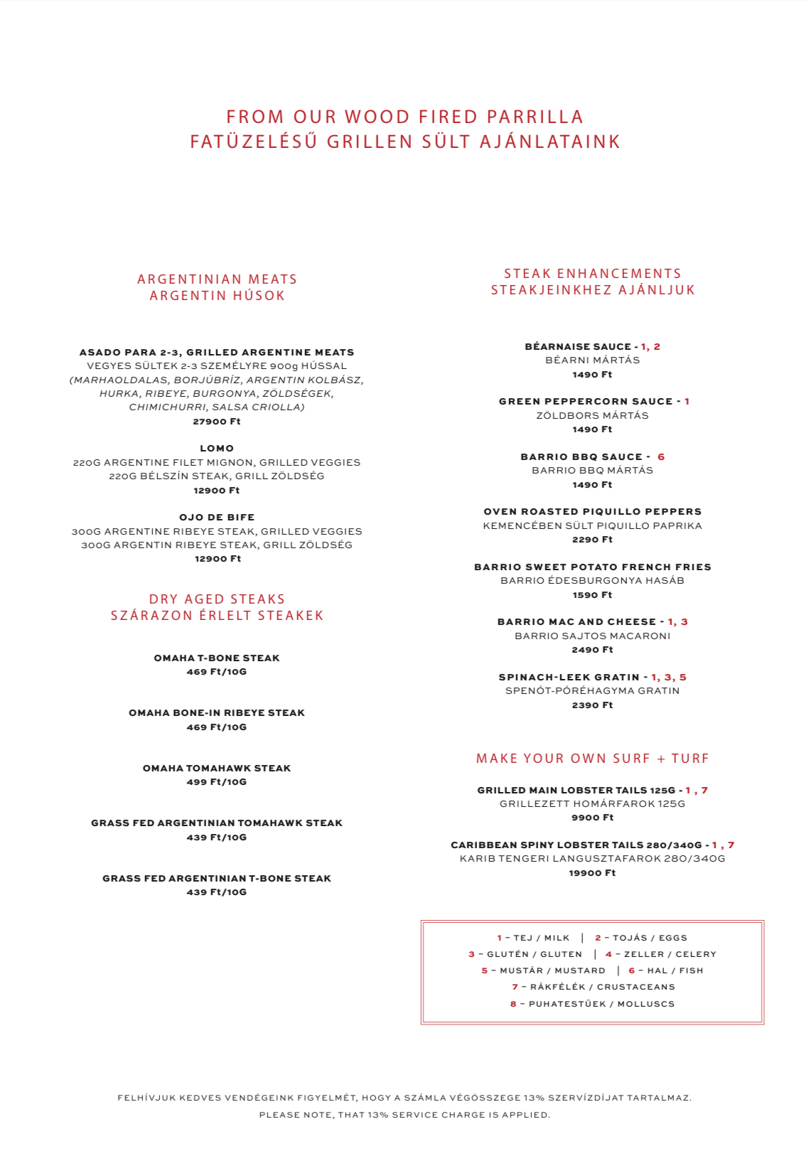 Bár a húsokat szenvedélyesen szeretem, a Barrio nem steakhouse. Itt a hangsúly a tradicionális argentin ételeken van, de mellettük megtalálhatók baszk és spanyol fogások vagy például a hagyományos perui ceviche is. Egy kis olvasztótégely lettünk, de argentin zászlóval, ami nem csoda, hiszen Argentína is egy olvasztótégely, ahol a lakosság ⅔-a olasz gyökerekkel rendelkezik. Az, hogy van pizza az étlapunkon, egyáltalán nem idegen az argentin konyhától, sőt! A kínálatunkban megtalálható a dél-amerikai kedvenc, a fugazzeta, ami egy mozzarellás, fehérhagymás és oregánós pizza. A klasszikus empanadát kézzel készítjük, de autentikus receptúrájú kolbász és véres hurka is szerepel az étlapon, nem beszélve a parázson sült borjúbrízről, az argentin vacsora ritkaságszámba menő koronájáról, amiről még a gourmet-k is elismerően nyilatkoznak.